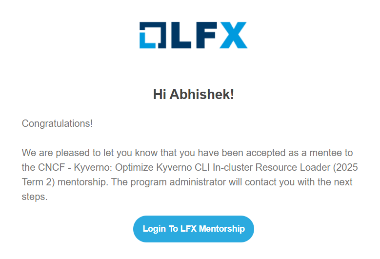 When I first learnt about open source in March 2025, I discovered CNCF and its enormous ecosystem of open source projects. I was excited to discover Kyverno, which is a Kubernetes policy engine. I started to browse its codebase, fixed some beginner friendly issues and joined its Slack communication channel. I learned about its weekly community meetings, where it was easy to talk about my work and contributions within the community, engage with maintainers and ask for their advice for contributions. In one of these community meetings, I learned about the LFX Mentorship program and started reading more about it.